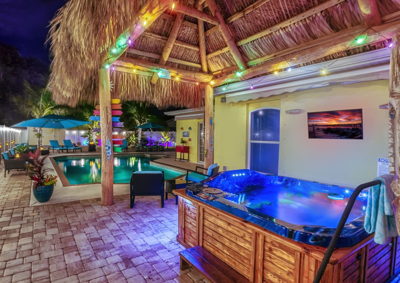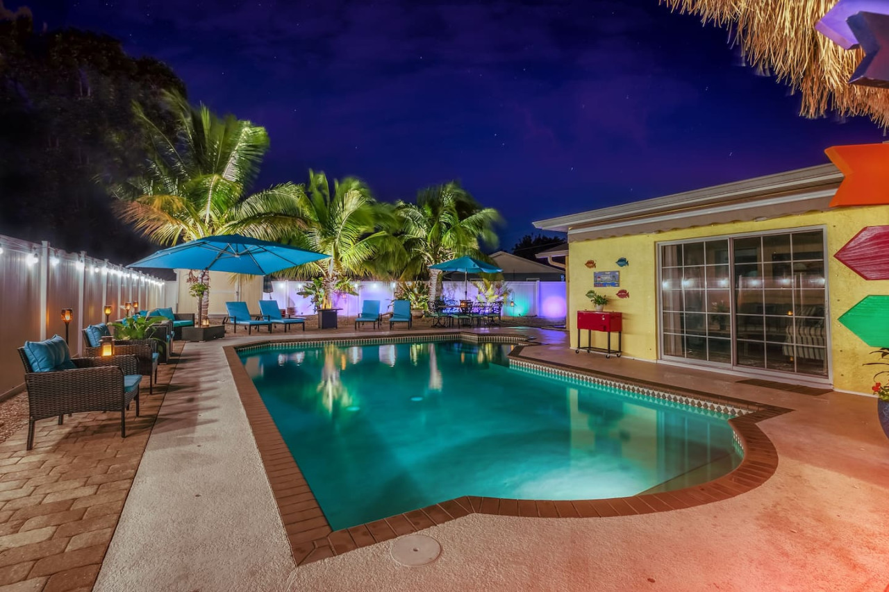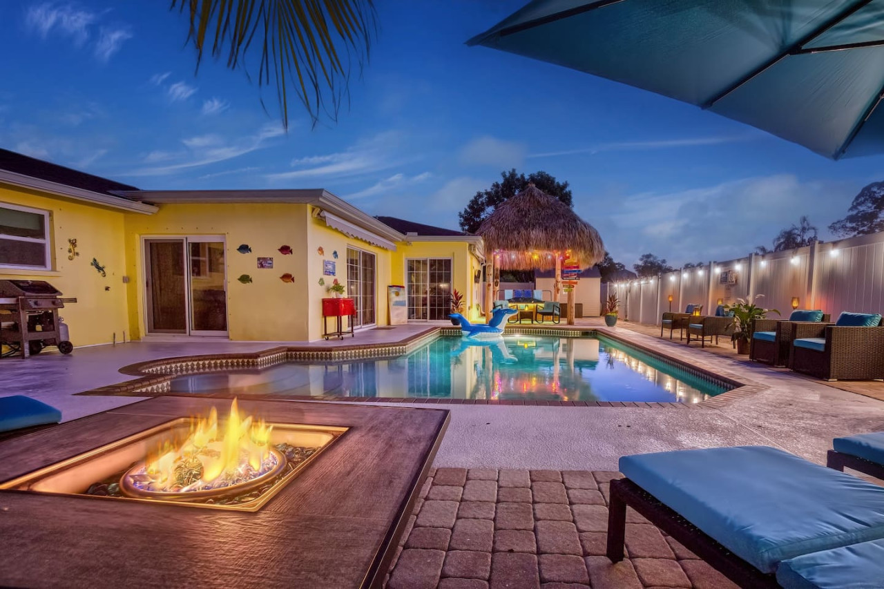 August 2024 5.00We booked the property for my husband's 65th birthday with our children and brought our family dog along. The home was dog friendly and even had dog bowls inside and out for our precious Bentley. The home had 3 bedrooms and 3 bathrooms which was a huge plus for our 3 children and my husband and I. The outdoor pool, jacuzzi, 2 tables with umbrella and a outdoor sitting area with lights with a tropical feel. There were plenty of beach chairs, umbrellas, coolers, and floatables for the pool. The home was clean and well decorated beachy theme. The beds were very comfortable and the air conditioning worked perfectly fine at 74 degrees. The home was in a great neighborhood in a cudlesac that was quiet and safe. The home was spacious and a great layout with many TV's so everyone could enjoy there own shows. Close to AMI with many restaurants, shopping and entertainment. Location was perfect to travel to different parts of FL. The kitchen had plenty amenities. We will definitely book again.