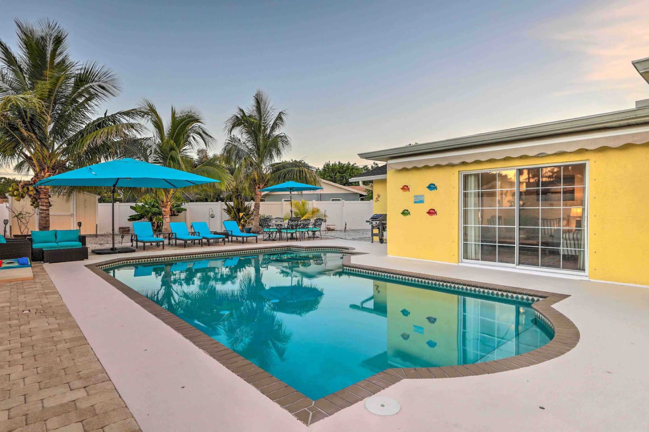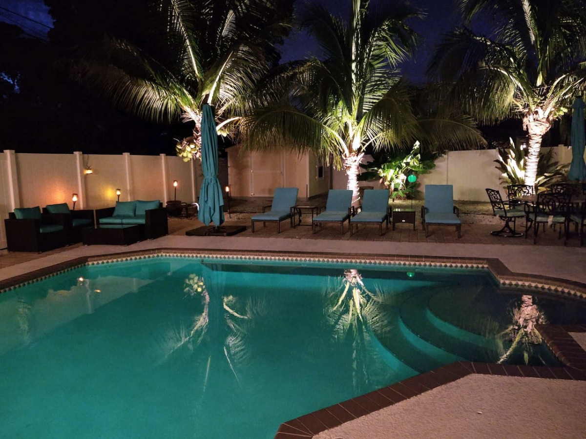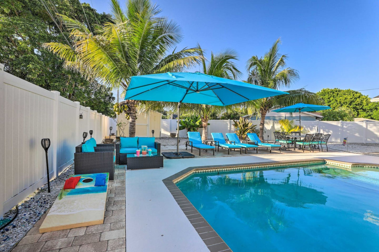 August 2024 5.00We booked the property for my husband's 65th birthday with our children and brought our family dog along. The home was dog friendly and even had dog bowls inside and out for our precious Bentley. The home had 3 bedrooms and 3 bathrooms which was a huge plus for our 3 children and my husband and I. The outdoor pool, jacuzzi, 2 tables with umbrella and a outdoor sitting area with lights with a tropical feel. There were plenty of beach chairs, umbrellas, coolers, and floatables for the pool. The home was clean and well decorated beachy theme. The beds were very comfortable and the air conditioning worked perfectly fine at 74 degrees. The home was in a great neighborhood in a cudlesac that was quiet and safe. The home was spacious and a great layout with many TV's so everyone could enjoy there own shows. Close to AMI with many restaurants, shopping and entertainment. Location was perfect to travel to different parts of FL. The kitchen had plenty amenities. We will definitely book again.