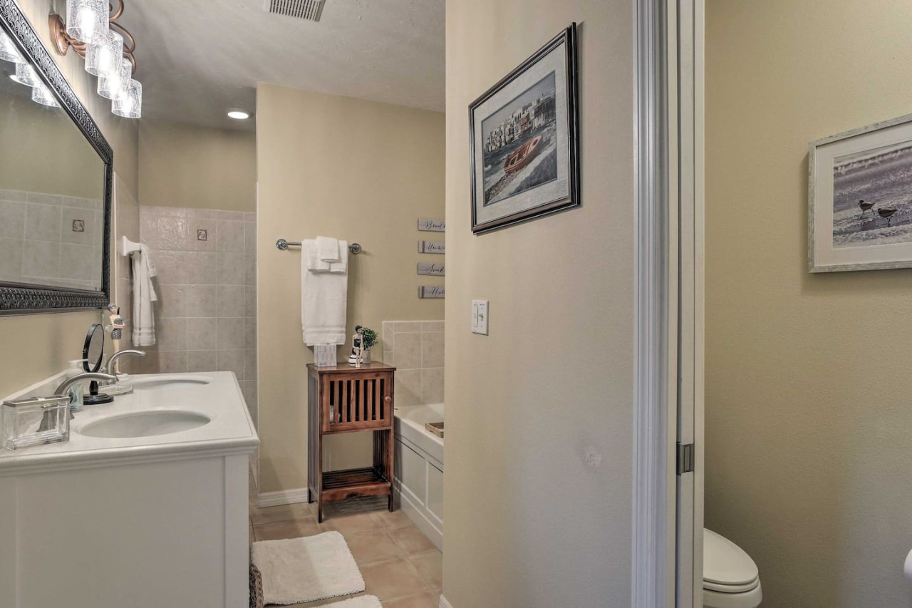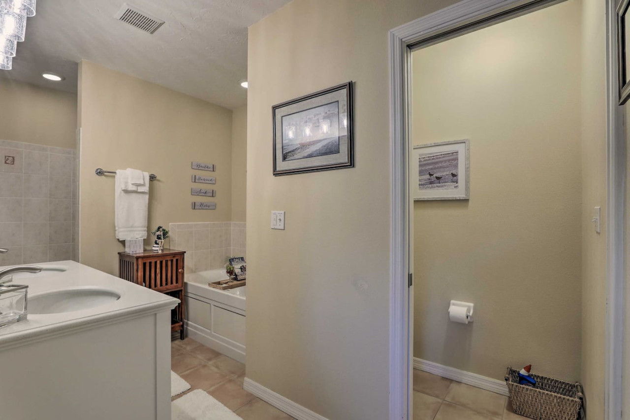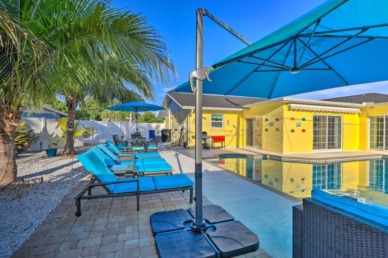 Enjoy with your whole family at Villa Delfino, a single family home in the heart of beautiful Bradenton. It is a one-of-a-kind fully enclosed, dog friendly outdoor space with a HEATED pool, hot tub, BBQ grill, fire pit, lounge chairs and tiki hut. The home is located just 6 miles to Anna Maria Island with some of the most gorgeous beaches in the world. We supply beach gear including towels, chairs, umbrella, boogie boards, etc. Inside we offer 2 en suites, 1 with a KING bed, FUN Game room.. This is a private home in a cul-de-sac that is 1/2 Mile to Manatee River, 5 miles to AMI public beach, short drive to shopping centers and restaurants. Close to IMG, Bradenton Convention Center, Lecom Park for Pirates Spring Training, Lecom Medical school. Bedroom 1: King Bed en suite Bedroom 2: Queen Bed en suite Bedroom 3: Queen Bed Florida Room Queen Sleeper Sofa PACK N PLAY, High Chair, child safety pool fence in the shed OUTDOOR LIVING: Spacious lanai w/HEATED Pool (depth 3’-5’), Tiki Hut, loungers, outside dining space, shaded seating area, gas grill, cornhole, propane fire table, pool toys, beach bocce, beach chairs, umbrella & boogie boards. There is kiddie pool outside for your use. KITCHEN: Fridge, stove/oven, dishwasher, microwave, cooking basics, coffee maker (drip and Keurig), waffle maker, blender, pizza stone, Island for seating, crockpot, some spices, dishes, starter paper towels/trash bags. INDOOR LIVING: Open floor plan. 5 smart TVs, separate dining area, high chair/pack n play, game room including basketball game, foosball, tiki toss, dart board, tic tac toe, adult and children's books GENERAL INFORMATION: ADT Security system. Free high speed internet/Wi-Fi (500 mbps), linens including bath towels, washer & dryer, central air & heat, ceiling fans, complementary starter toiletries, hair dryer, iron/board, keyless entry, child pool safety gate available. FAQ: 1 step required to access front door, single-story home, 1 exterior security camera (Ring doorbell on front door), pet fee (paid per trip) QUIET TIME 11PM- 8AM (No exceptions as this is a family neighborhood) PARKING: Driveway (Max 4 vehicles), trailer/boat parking allowed on-site. POOL & BACKYARD SAFETY: The private pool in the backyard is NOT GATED although there is a child safety gate available. The entire backyard is fenced in. Children need to be SUPERVISED AT ALL TIMES especially in the backyard around the pool, hot tub, grill and fire pit. All guests as well as any parent/guardian of minors, will release the owners/hosts of the property from any personal injury that may occur during their stay. NO GLASSWARE ALLOWED IN THE POOL AREA: Please use plastic dishware and cups by the pool. Please help us maintain our amenities so that we can continue providing them in the future. Please DO NOT use bath towels/washcloths for makeup or removal of makeup. We supply MAKEUP towels. If hair is freshly colored, please use caution as to not stain towels. DO NOT FLUSH anything down besides human waste/toilet paper. Additional charges may apply for clogs or stained towels. DOG POLICY: Low shedding-well behaved dogs are allowed. You are responsible for any damages as well as to cleanup after your dog. There is a non-refundable pet fee of $200 per trip. Please message me to discuss if your dog should happen to damage anything or has an accident so our cleaners can attempt to remove the stain. Our cleaners are very good at stain removal although if we are unable to remove the stain, you are financially responsible. Guests have full access to the entire house. We have 2 owners closets that are locked. One shed outside is locked We communicate strictly through Airbnb so please have the app downloaded on your phone. We are always available for anything you might need. We live just a few miles away and are available for any questions or problems. Functional smoke detectors, fire extinguishers, and first aid kit in the house. Hospitals are minutes away if needed. Please message me with any questions! Enjoy everything in the surrounding area! Downtown Bradenton 2.5 miles Holmes Beach 5 miles Anna Maria Island 5 miles IMG Academy 3.8 miles Publix 2 miles Robinson's Preserve 2 miles Manatee Memorial Hospital 3 miles Dunkin 1 miles Lido Key & Downtown Sarasota 15.1 miles Siesta Key 19 miles SRX Airport 9 miles There is a free trolley that goes up and down Anna maria island and a bus comes to every stop every 20 minutes. There are 26 stops in total on the island so you can get anywhere. FREE! Download the "mystop" app and click on manatee county to get real time updates on bus expected arrival times. If staying in the area, we do suggest renting a vehicle. Please note we do have cameras ONLY outside the front door for everyone's safety. These cameras are located by the front doors of the house only. They will record audio and video. Please note we do not offer refunds of any kind for any reason if it’s outside of the cancellation policy in place. Airbnb offer trip insurance for each reservation.