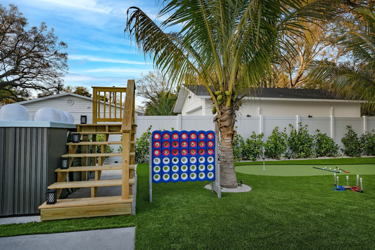 Experience island magic at The Reef! Vibrant underwater-themed murals, a heated swim spa, fire pit evenings, and outdoor family games make every moment unforgettable. Just minutes from Anna Maria Island’s sandy beaches, boutique shops, scenic walks, and breathtaking sunsets, this colorful, reef-inspired retreat is the perfect mix of sun, fun, and relaxation—ideal for creating lasting family memories in style, laughter, and sunshine. 4 BR / 3BA * BR #1 - King ensuite * BR #2 - King ensuite * BR #3 - Queen bed * BR #4 - L shaped bunk system with 2 top twin bunks, 1 bottom full bunk, and desk - also houses our Arcade machine with over 100 hundred games * Each bedroom is also equipped with its own Smart TV. * LR * Large modern kitchen with large eat in island with seating for 8 - coffee station * Laundry closet with full size stackable washer/dryer * Full Bathroom * Above ground Heated Swim Spa - 20'L x 12'W * Putting Green - 3 holes * Fire pit * Underwater ocean murals * Pergola with dining and grill * Plenty of chairs for lounging * Large outdoor games - corn hole, connect 4 and more Guests have full access to the entire house. We have a few owners closets that are locked and labeled. We communicate strictly through Airbnb so please have the app downloaded on your phone. We are always available for anything you might need. We live just a few miles away and are available for any questions or problems. Functional smoke detectors, fire extinguishers, and first aid kit in the house. Hospitals are minutes away if needed. Please message me with any questions! Enjoy everything in the surrounding area! Downtown Bradenton 1.5 miles Holmes Beach 6 miles Anna Maria Island 6 miles IMG Academy 3.8 miles Publix WALKABLE Robinson's Preserve 4 miles Manatee Memorial Hospital 1.5 miles Dunkin 1 miles Lido Key & Downtown Sarasota 15.1 miles Siesta Key 18 miles SRQ Airport 8 miles This is a free trolley that goes up and down Anna maria island and a bus comes to every stop every 20 minutes. There are 26 stops in total on the island so you can get anywhere. FREE! Download the "mystop" app and click on manatee county to get real time updates on bus expected arrival times. If staying in the area, we do suggest renting a vehicle. Please note we do have cameras ONLY outside for everyone's safety. These cameras are located by the front doors and around the back of the house. Cameras are in all 4 corners of the house (OUTSIDE ONLY). They will record audio and video. Please note we do not offer refunds of any kind for any reason if it’s outside of the cancellation policy in place. Airbnb offer trip insurance for each reservation.
