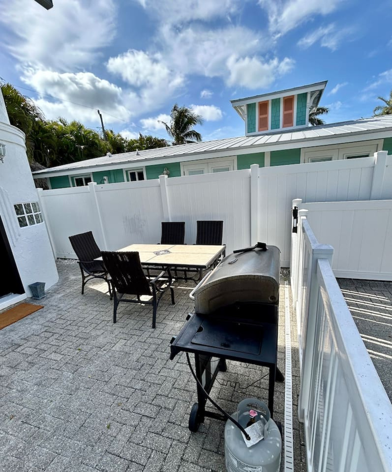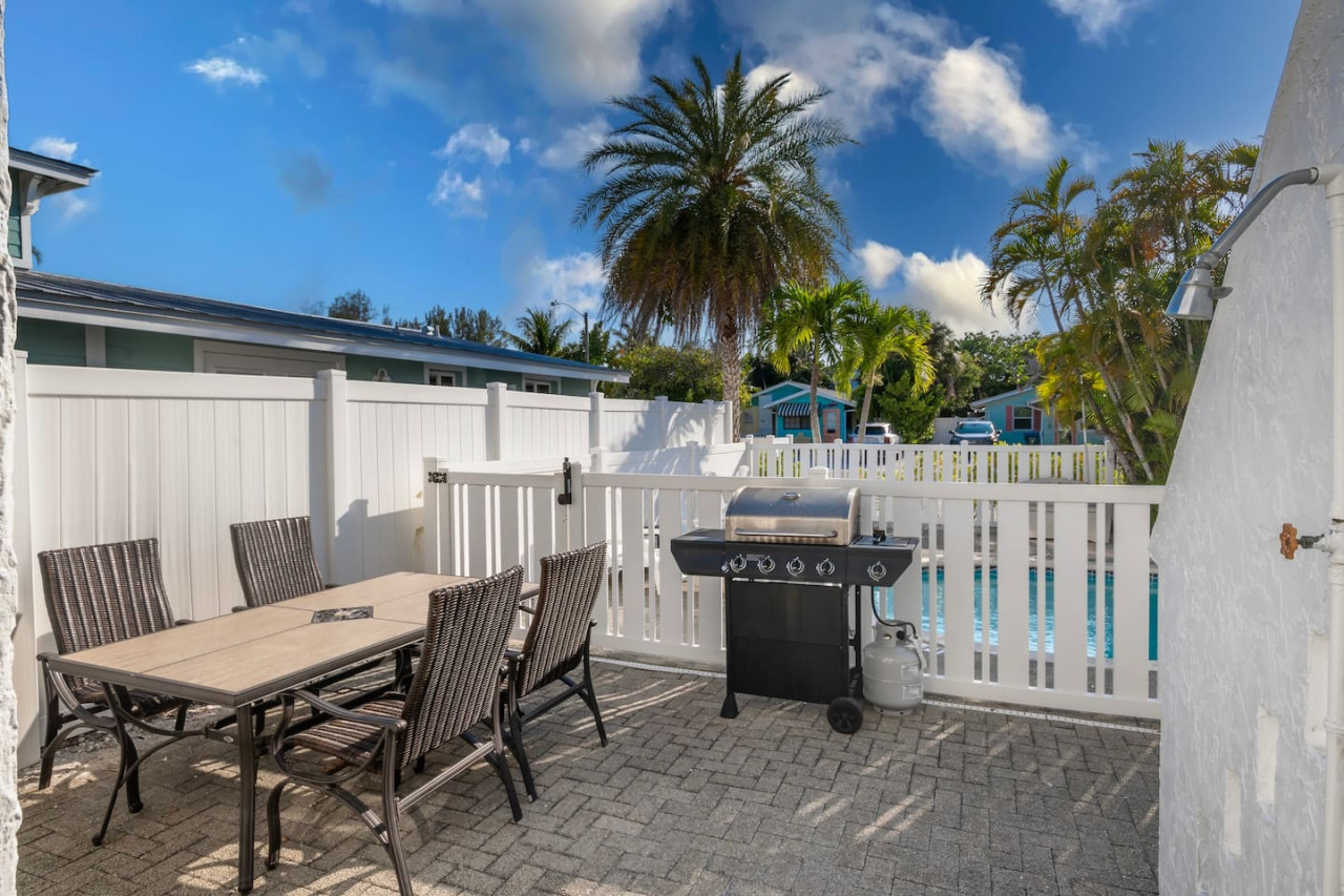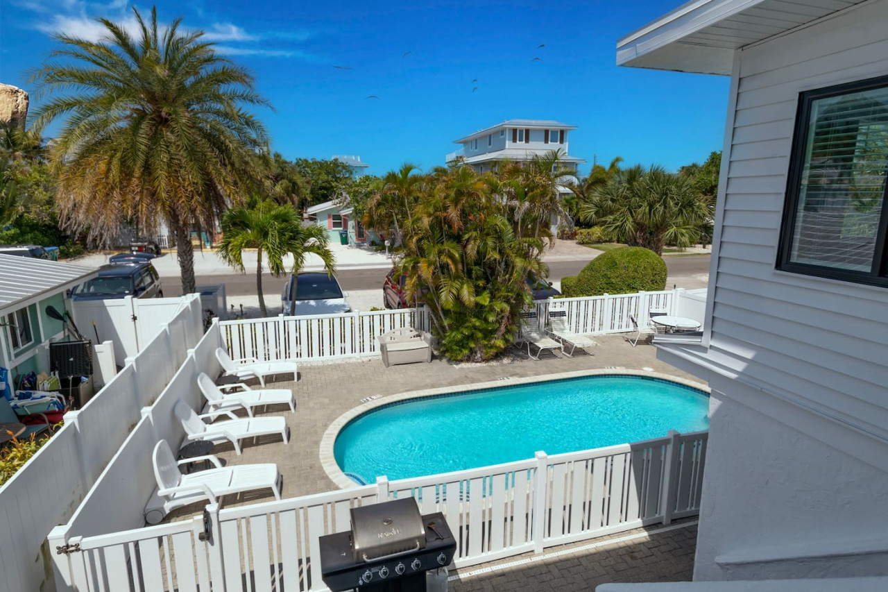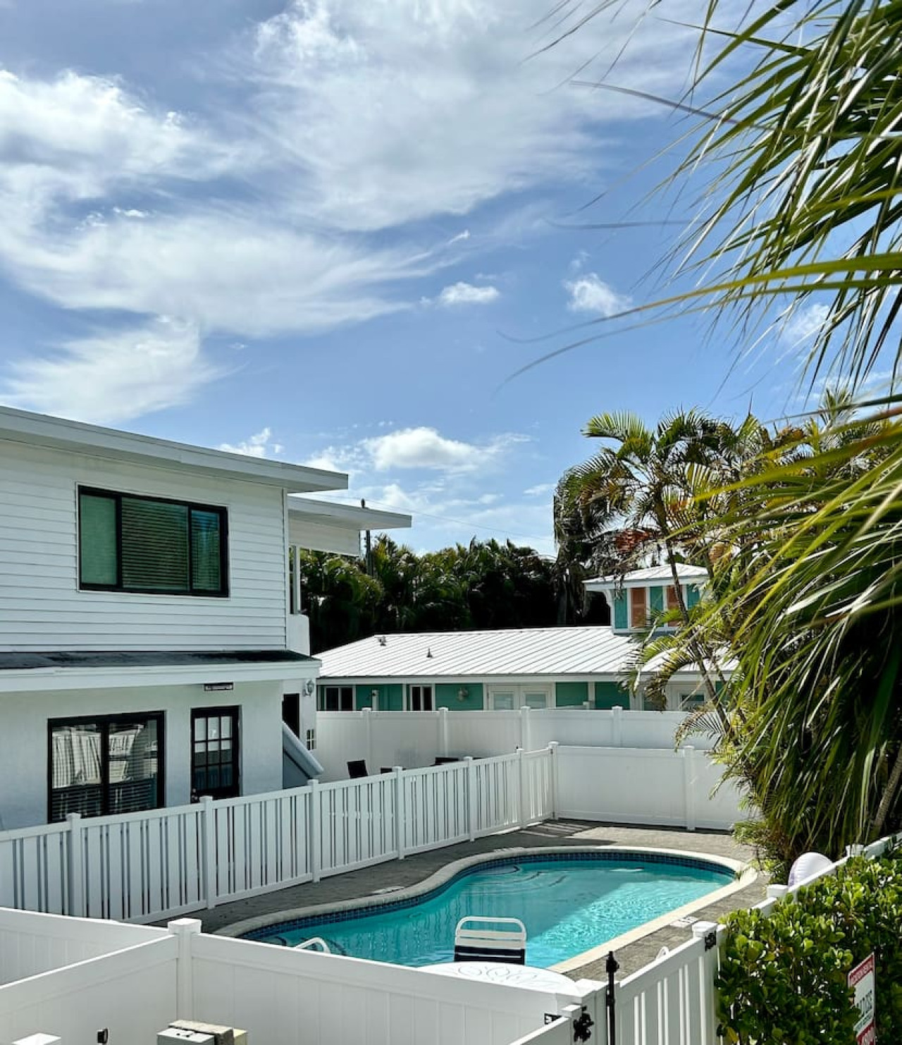 Retreat to the warmth and laid-back charm of Anna Maria Island. This unit features a PRIVATE entrance in a cozy three-unit complex, sharing only the heated pool and grill area. Just steps from sandy beaches, enjoy long shoreline walks, breathtaking sunsets, local cuisine, and boutique shopping. Hop on the FREE trolley to explore the entire 7-mile island, from charming neighborhoods to waterfront dining. It’s the perfect place to slow down, soak up the sunshine, and create unforgettable memories. Island Suite - 1 Bedroom- Ground Level Deluxe 1 Bedroom Suite *Queen bedroom *Sleeper Sofa *Full bathroom *FREE fast WiFi *Smart TV's *Fully equipped kitchen *Use of shared heated pool *Use of shared grill *Beach Chairs and other beach supplies in garage *Fresh linens and towels provided - 1 full set of towels per guest including a beach towel *Complimentary starter supply of shampoo, conditioner, body wash, hand soap, laundry pods, dishwasher pods, paper towels, toilet paper, coffee, creamer and sugar supplied. There are also extra trash bags provided for your stay. 1 Small dog (<25lbs) non shedding, fully trained = pet fee required