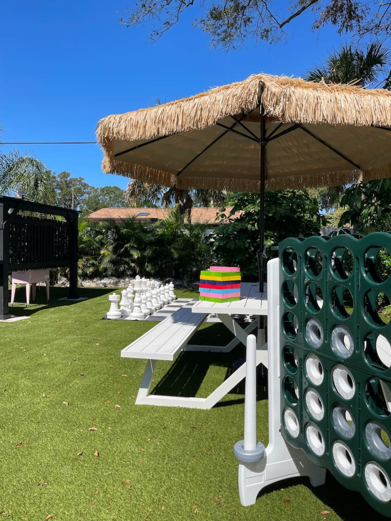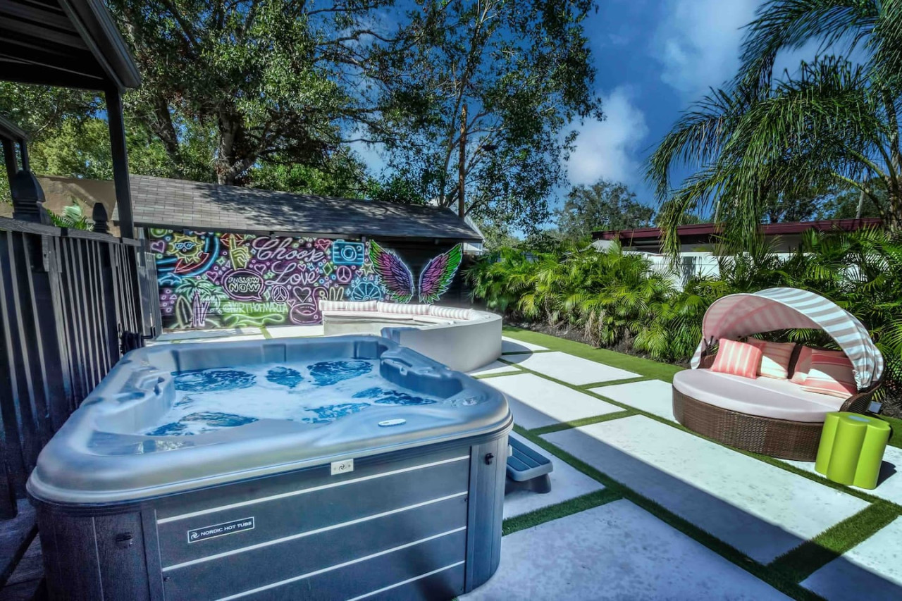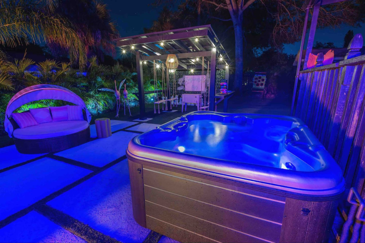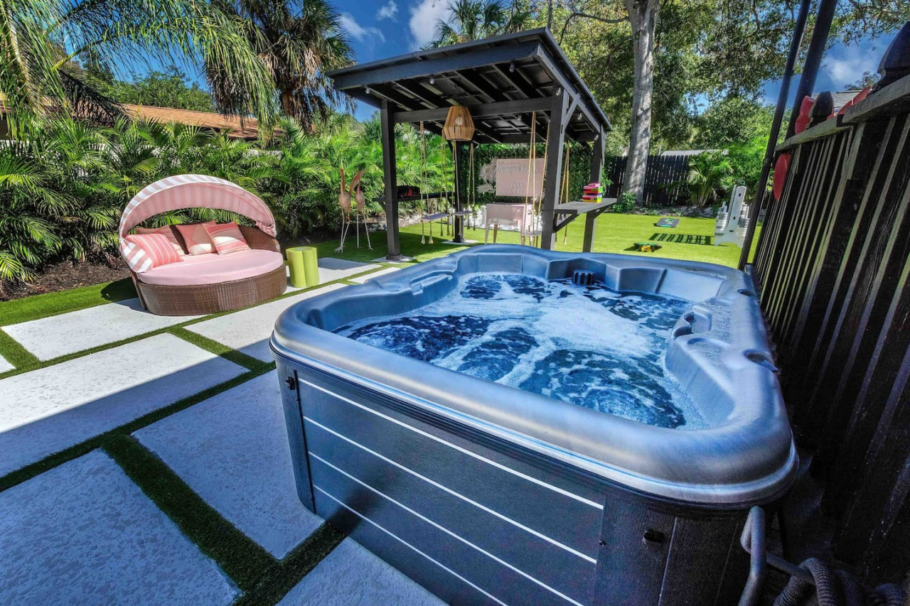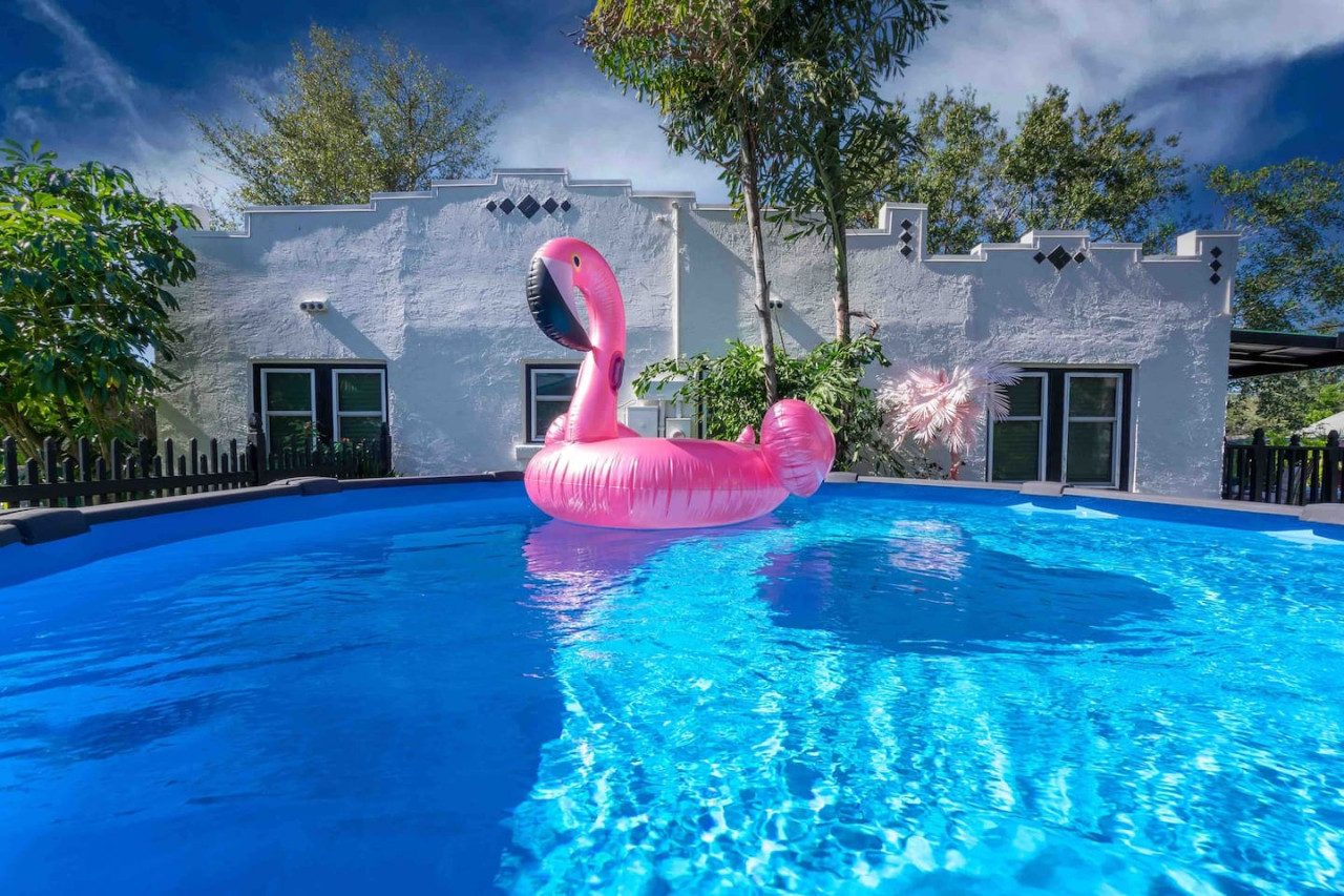 Dive into the curious home of Tipsy Flamingo. The tropical fever dream you didn’t know you needed! Stay in a historic home bursting with fluorescent colors, a pink-tastic Flamingo Suite, a wild Jungle Room, and a chill coastal Surf Den. Outside, swing under the pergola, battle it out in giant chess, soak in the hot tub, lounge by the fire pit, and float in the sparkling pool on your honorary pink flamingo throne. Pure fun, pure vibes, pure madness! 🦩 Fun in the sun starts here! Our eclectic mid-century meets Florida chic home is full of photo-worthy details, themed bedrooms, and everything you need for a playful, comfortable stay. 🛏 Sleeping Arrangements Master (Welcome to the Jungle): Queen bed + ensuite Flamboyance Room: Full-size bed, flamingo flair Welcome to the Shore: Twin + trundle Best for kids — centrally located with limited privacy 🌞 Backyard Fun 🔥 Fire pit for gathering ✨ Pergola swings 🧩 Mega chess, Connect Four, Jenga ☀️ Open yard for sunbathing 🏊♂️ Above-ground pool 💡 Illuminated spa 🍳 Large gas griddle for outdoor cooking 🏡 Inside the Home 🛋 Mid-century living room with velvet couches, vinyl records & vintage record player 🔥 Fireplace is decorative only — no wood burning 🌡 A/C & Heat: Please don’t set below 70°F (cool) or above 68°F (heat) 📺 Smart TVs in each room (no cable) — log into your apps 🎮 Return TV remotes to their designated holders 🧺 What We Provide Linens 1 bath towel per guest (+ extras) 1 hand towel per guest (+ extras) 1 washcloth per guest Make-up cloths Beach towels Clean sheets, quilts, pillows (+ extra for trundle) Starter Toiletries/Supplies 🧻 Toilet paper (2 per bathroom) 🧴 Shampoo/Conditioner/Body Wash 🗑 Small trash bags 💨 Hair dryer 🧻 Paper towels (2) 🧽 New sponge 🫧 Dish soap 🧼 Dishwasher pods (1 per night, up to 7) 🗑 Large trash bags (1 per night, up to 7) Beach Gear ⛱ Umbrella 🧺 Beach towels ❄️ Cooler 🪑 4+ beach chairs Coffee Station ☕ K-Cups 🫘 Small bag of ground coffee 🥛 Creamers Guests enjoy full access to the entire home. We respect your privacy during your stay with us, but if you need us we are here and ready to assist. Please enjoy your time in this quiet neighborhood and respect our neighbors. This is a free trolley that goes up and down Anna maria island and a bus comes to every stop every 20 minutes. There are 26 stops in total on the island so you can get anywhere. FREE! You can also check out the Gulf Island Ferry to get out to the island and enjoy some sights along the way. Download the "mystop" app and click on manatee county to get real time updates on bus expected arrival times. If staying in the area, we do suggest renting a vehicle. Please note we do have cameras ONLY outside for everyone's safety. These cameras are located by the front door and around the back of the house. They will record audio and video. Please note we do not offer refunds of any kind for any reason if it’s outside of the cancellation policy in place. Your booking platform offers trip insurance for each reservation that must be purchased at time of reservation. If you miss this opportunity, you will need to purchase private trip insurance to ensure you can cancel for any reason, outside the normal cancellation period.