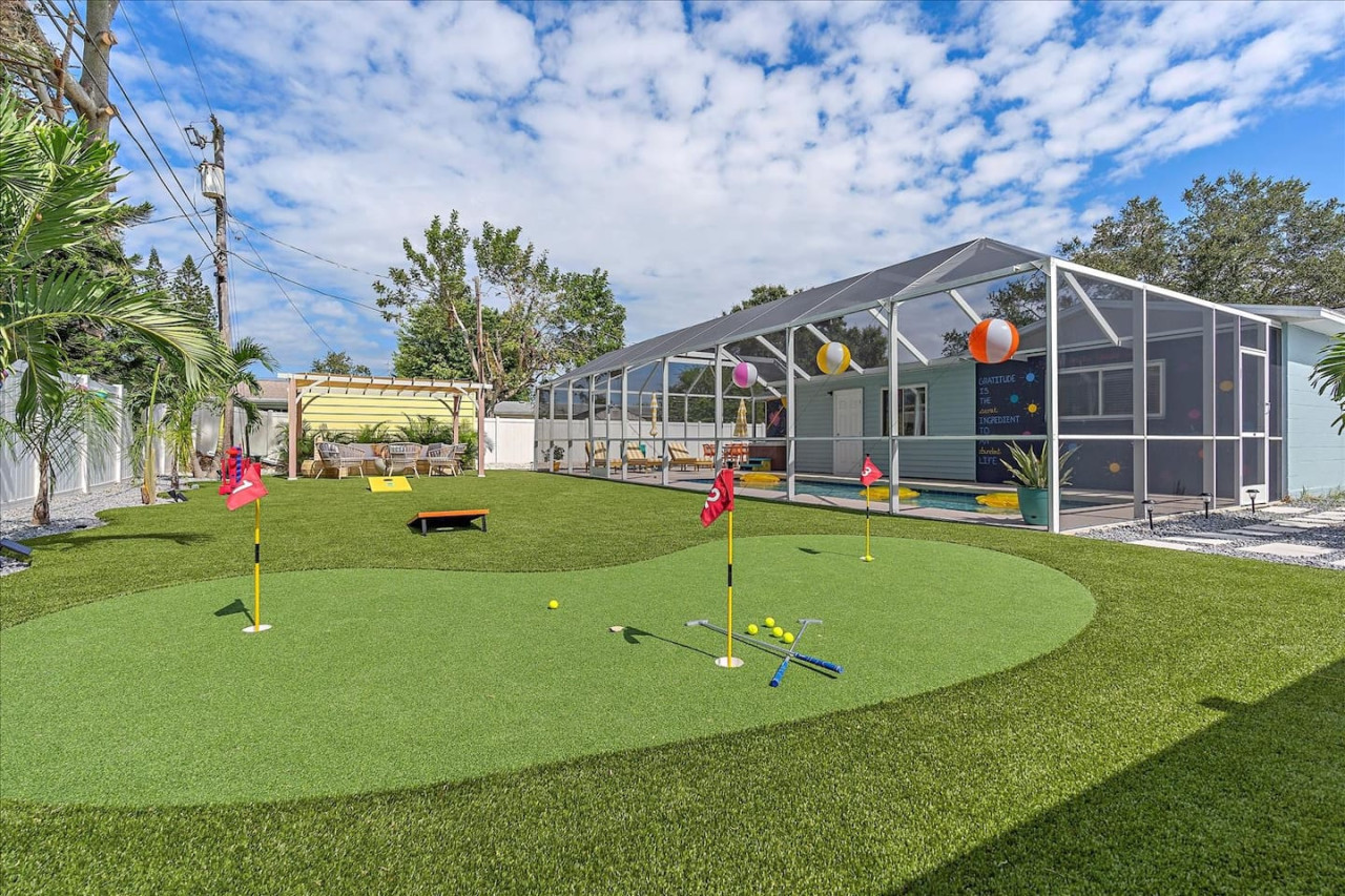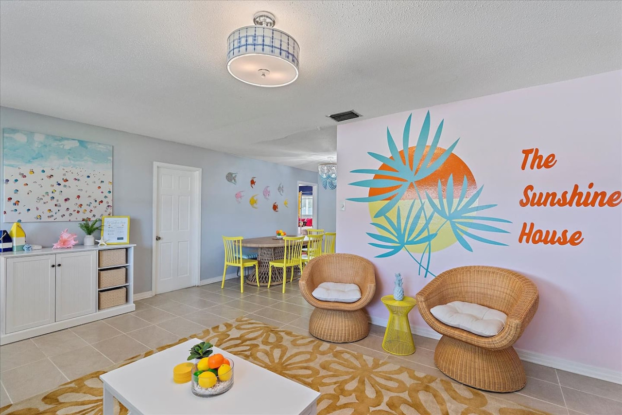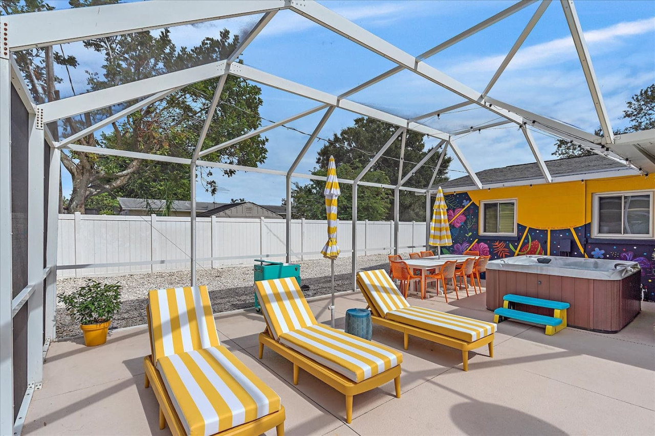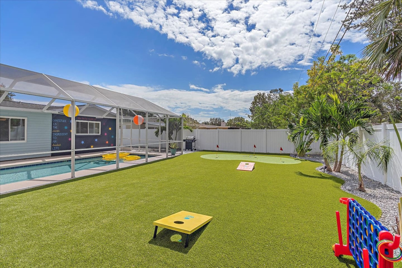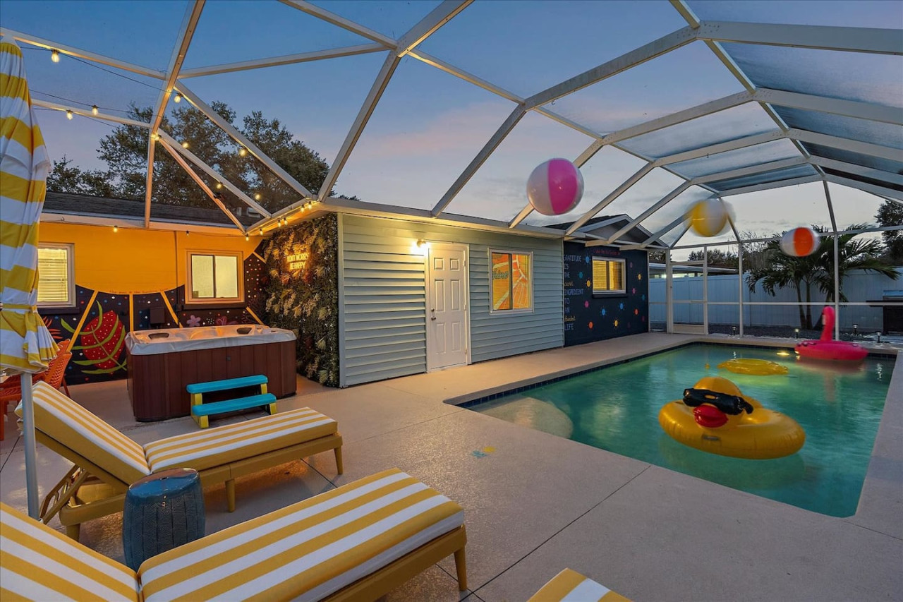 Escape the cold and dive into sunshine, sandy beaches, and breathtaking sunsets at this cheerful retreat! Perfect for family fun, this home features a heated pool, soothing hot tub, and plenty of space for games and laughter. Relax on inviting outdoor patios, soak up the warm Florida breeze, or make memories playing together indoors. With sun-filled days, cozy nights, and endless beach adventures, this is your ultimate getaway to recharge, reconnect, and celebrate life in style. The Sunshine House: 3 bedroom/2 bath Bedroom#1: King ensuite - King bed, ensuite with walk-in shower, and walk-in closet Bedroom#2: Queen room - queen bed, with full closet and dresser Bedroom#3: Bunk room - 2 sets of bunks, dresser, and full closet Hall Bathroom - full bathroom with tub to be shared by the rooms on that side of the house The Sunshine house also has a living room, game room, large kitchen, dining room, and laundry room is in the garage. Each room has a smart TV and FAST, FREE WiFi. Out back you will find the screened lanai which houses our inground heated pool, hot tub, dining area, lounge area and several murals perfect for those photo opps. Beyond the lanai you will find our fire pit set beneath the pergola. The putting green, the corn hole and our propane grill. The yellow shed is filled with beach supplies and pool gear. We want to lighten the load as you prepare for your trip. The home always has condiments and spices that we have ensured are safe for consumption. ITEMS WE PROVIDE: LINENS/TOWELS: Bath Towel - 1 per guest (1 extra per bathroom) Hand Towel - 1 per guest (1 extra in each shared bathroom) Wash cloths - 1 per guest Make-up removal wash cloths - 1 per adult guest (1 extra per bathroom) Beach towels - 1 per guest Clean bed linens, quilts, and pillows for each bed. An extra set of sheets and pillow will be provided for the trundle bed. HOUSE SUPPLIES/TOILETRIES: Complimentary Starter Supply 2 rolls of toilet paper per bathroom Shampoo/Conditioner/Shower Gel - dispensers in each bathroom Small trash bags - 3 per small can Hair Dryer 2 rolls of paper towels - 1 on 1 under sink A new kitchen sponge Travel size dish soap Dishwasher pods - 1 per night up to 7 nights Large trash bags - 1 per night up to 7 nights BEACH SUPPLIES: 1 beach umbrella 1 beach towel per guest 1 cooler Beach chairs (minimum of 4) COFFEE STATION: Complimentary starter supply K-Cups Small package of ground coffee Creamers Sugar We are 6 miles to ANNA MARIA island, 7 miles to BRADENTON BEACH, and only 18 miles to SIESTA KEY! IMG less than 3 miles away. Close to State parks, historical parks, museums, fishing and boating. We have a full guest manual in the home, with all the information you will need for our home and brochures and maps of the area, that should give you plenty to explore, if you choose to venture away from the home. Guests have full access to the entire house. We have 2 owners closets. We communicate strictly through your booking platform so please have the app downloaded on your phone. We are always available for anything you might need. Functional smoke detectors, fire extinguishers, and first aid kit in the house. Hospitals are minutes away if needed. Please message me with any questions! Enjoy everything in the surrounding area! Downtown Bradenton 2.5 miles Holmes Beach 6 miles Anna Maria Island 6 miles IMG Academy 2.3 miles Publix 3.1 miles Robinson's Preserve 5 miles Manatee Memorial Hospital 3 miles Dunkin 2.1 miles Lido Key & Downtown Sarasota 15.1 miles Siesta Key 19 miles SRX Airport 9 miles This is a free trolley that goes up and down Anna maria island and a bus comes to every stop every 20 minutes. There are 26 stops in total on the island so you can get anywhere. FREE! If you want to enjoy the sights on your way to the island find all the information to the Gulf Island Ferry in our guest manual. You will ride along the to the island while enjoying the sights. Download the "mystop" app and click on manatee county to get real time updates on bus expected arrival times. If staying in the area, we do suggest renting a vehicle. Please note we do have cameras ONLY outside for everyone's safety. These cameras are located by the front door and around the back of the house. They will record audio and video. Please note we do not offer refunds of any kind for any reason if it’s outside of the cancellation policy in place. Your booking platform offers trip insurance for each reservation that must be purchased at the time of reservation. If you miss this opportunity, and want to guarantee the option to cancel outside the normal cancellation period, you will need to purchase private trip insurance.