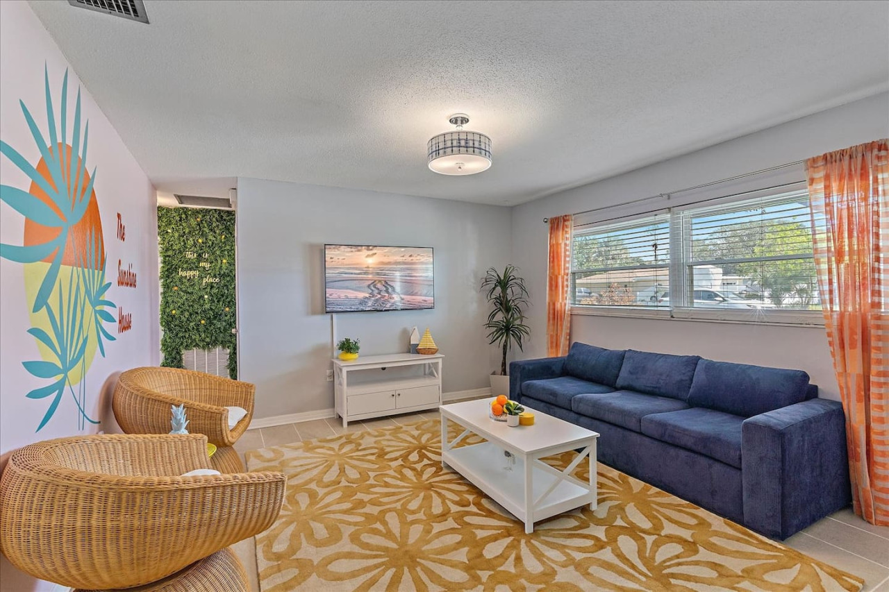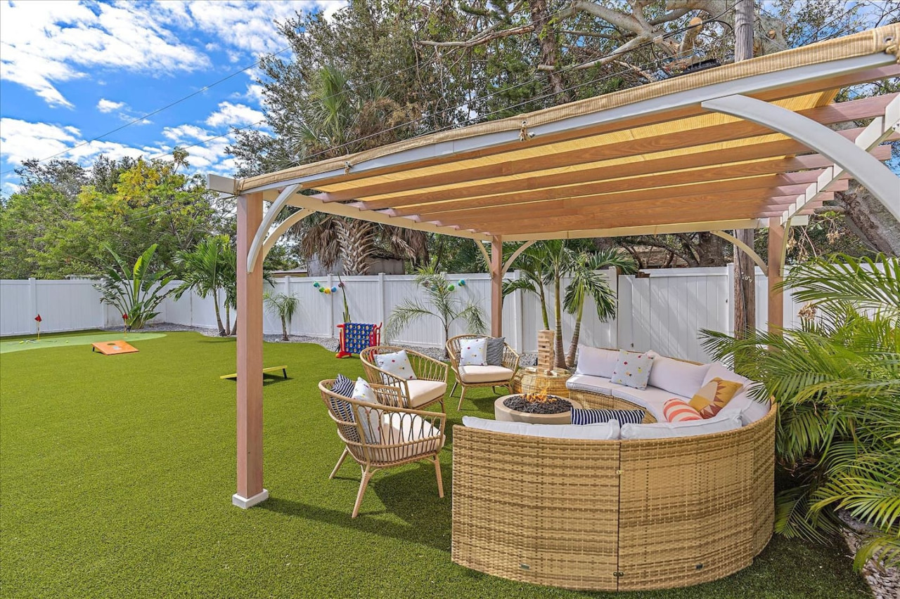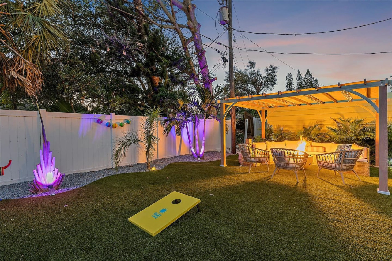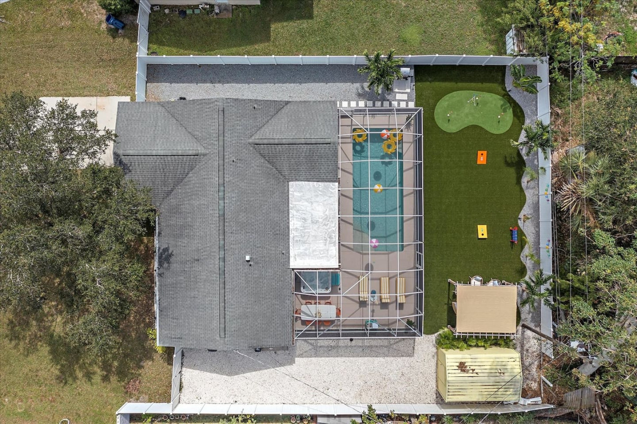 Escape the cold and dive into sunshine, sandy beaches, and breathtaking sunsets at this cheerful retreat! Perfect for family fun, this home features a heated pool, soothing hot tub, and plenty of space for games and laughter. Relax on inviting outdoor patios, soak up the warm Florida breeze, or make memories playing together indoors. With sun-filled days, cozy nights, and endless beach adventures, this is your ultimate getaway to recharge, reconnect, and celebrate life in style. The Sunshine House: 3 bedroom/2 bath Bedroom#1: King ensuite - King bed, ensuite with walk-in shower, and walk-in closet Bedroom#2: Queen room - queen bed, with full closet and dresser Bedroom#3: Bunk room - 2 sets of bunks, dresser, and full closet Hall Bathroom - full bathroom with tub to be shared by the rooms on that side of the house The Sunshine house also has a living room, game room, large kitchen, dining room, and laundry room is in the garage. Each room has a smart TV and FAST, FREE WiFi. Out back you will find the screened lanai which houses our inground heated pool, hot tub, dining area, lounge area and several murals perfect for those photo opps. Beyond the lanai you will find our fire pit set beneath the pergola. The putting green, the corn hole and our propane grill. The yellow shed is filled with beach supplies and pool gear. We want to lighten the load as you prepare for your trip. The home always has condiments and spices that we have ensured are safe for consumption. ITEMS WE PROVIDE: LINENS/TOWELS: Bath Towel - 1 per guest (1 extra per bathroom) Hand Towel - 1 per guest (1 extra in each shared bathroom) Wash cloths - 1 per guest Make-up removal wash cloths - 1 per adult guest (1 extra per bathroom) Beach towels - 1 per guest Clean bed linens, quilts, and pillows for each bed. An extra set of sheets and pillow will be provided for the trundle bed. HOUSE SUPPLIES/TOILETRIES: Complimentary Starter Supply 2 rolls of toilet paper per bathroom Shampoo/Conditioner/Shower Gel - dispensers in each bathroom Small trash bags - 3 per small can Hair Dryer 2 rolls of paper towels - 1 on 1 under sink A new kitchen sponge Travel size dish soap Dishwasher pods - 1 per night up to 7 nights Large trash bags - 1 per night up to 7 nights BEACH SUPPLIES: 1 beach umbrella 1 beach towel per guest 1 cooler Beach chairs (minimum of 4) COFFEE STATION: Complimentary starter supply K-Cups Small package of ground coffee Creamers Sugar We are 6 miles to ANNA MARIA island, 7 miles to BRADENTON BEACH, and only 18 miles to SIESTA KEY! IMG less than 3 miles away. Close to State parks, historical parks, museums, fishing and boating. We have a full guest manual in the home, with all the information you will need for our home and brochures and maps of the area, that should give you plenty to explore, if you choose to venture away from the home. Guests have full access to the entire house. We have 2 owners closets. We communicate strictly through your booking platform so please have the app downloaded on your phone. We are always available for anything you might need. Functional smoke detectors, fire extinguishers, and first aid kit in the house. Hospitals are minutes away if needed. Please message me with any questions! Enjoy everything in the surrounding area! Downtown Bradenton 2.5 miles Holmes Beach 6 miles Anna Maria Island 6 miles IMG Academy 2.3 miles Publix 3.1 miles Robinson's Preserve 5 miles Manatee Memorial Hospital 3 miles Dunkin 2.1 miles Lido Key & Downtown Sarasota 15.1 miles Siesta Key 19 miles SRX Airport 9 miles This is a free trolley that goes up and down Anna maria island and a bus comes to every stop every 20 minutes. There are 26 stops in total on the island so you can get anywhere. FREE! If you want to enjoy the sights on your way to the island find all the information to the Gulf Island Ferry in our guest manual. You will ride along the to the island while enjoying the sights. Download the "mystop" app and click on manatee county to get real time updates on bus expected arrival times. If staying in the area, we do suggest renting a vehicle. Please note we do have cameras ONLY outside for everyone's safety. These cameras are located by the front door and around the back of the house. They will record audio and video. Please note we do not offer refunds of any kind for any reason if it’s outside of the cancellation policy in place. Your booking platform offers trip insurance for each reservation that must be purchased at the time of reservation. If you miss this opportunity, and want to guarantee the option to cancel outside the normal cancellation period, you will need to purchase private trip insurance.