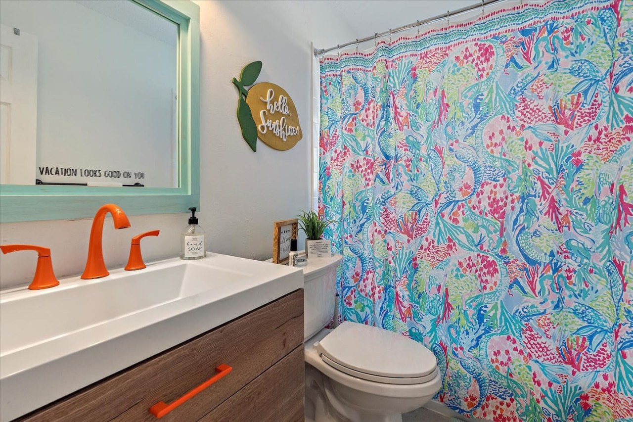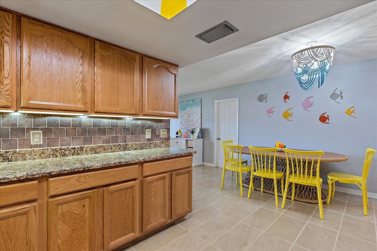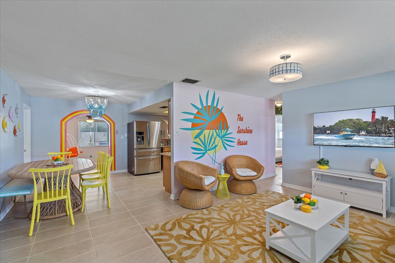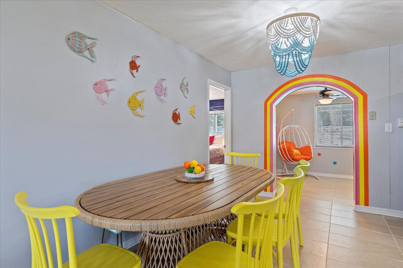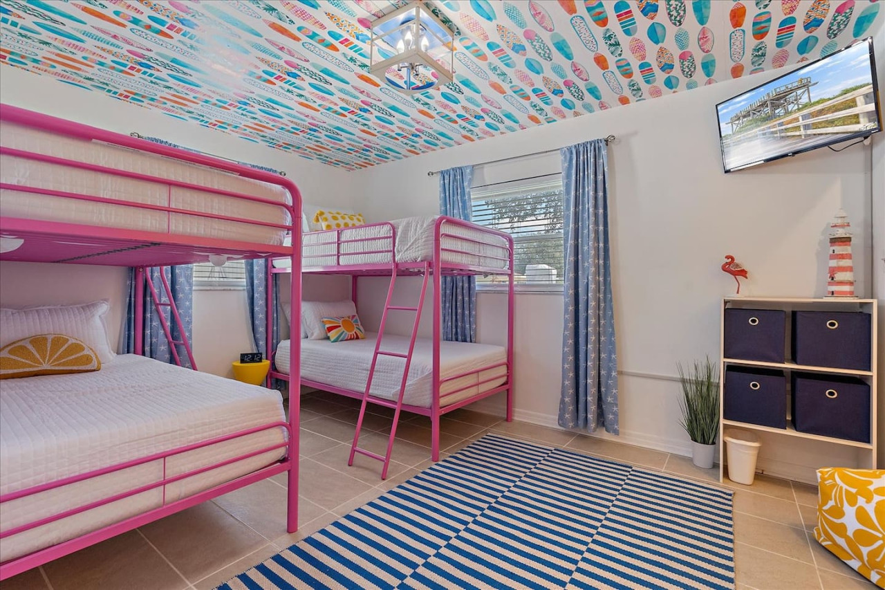 Escape the cold and dive into sunshine, sandy beaches, and breathtaking sunsets at this cheerful retreat! Perfect for family fun, this home features a heated pool, soothing hot tub, and plenty of space for games and laughter. Relax on inviting outdoor patios, soak up the warm Florida breeze, or make memories playing together indoors. With sun-filled days, cozy nights, and endless beach adventures, this is your ultimate getaway to recharge, reconnect, and celebrate life in style. The Sunshine House: 3 bedroom/2 bath Bedroom#1: King ensuite - King bed, ensuite with walk-in shower, and walk-in closet Bedroom#2: Queen room - queen bed, with full closet and dresser Bedroom#3: Bunk room - 2 sets of bunks, dresser, and full closet Hall Bathroom - full bathroom with tub to be shared by the rooms on that side of the house The Sunshine house also has a living room, game room, large kitchen, dining room, and laundry room is in the garage. Each room has a smart TV and FAST, FREE WiFi. Out back you will find the screened lanai which houses our inground heated pool, hot tub, dining area, lounge area and several murals perfect for those photo opps. Beyond the lanai you will find our fire pit set beneath the pergola. The putting green, the corn hole and our propane grill. The yellow shed is filled with beach supplies and pool gear. We want to lighten the load as you prepare for your trip. The home always has condiments and spices that we have ensured are safe for consumption. ITEMS WE PROVIDE: LINENS/TOWELS: Bath Towel - 1 per guest (1 extra per bathroom) Hand Towel - 1 per guest (1 extra in each shared bathroom) Wash cloths - 1 per guest Make-up removal wash cloths - 1 per adult guest (1 extra per bathroom) Beach towels - 1 per guest Clean bed linens, quilts, and pillows for each bed. An extra set of sheets and pillow will be provided for the trundle bed. HOUSE SUPPLIES/TOILETRIES: Complimentary Starter Supply 2 rolls of toilet paper per bathroom Shampoo/Conditioner/Shower Gel - dispensers in each bathroom Small trash bags - 3 per small can Hair Dryer 2 rolls of paper towels - 1 on 1 under sink A new kitchen sponge Travel size dish soap Dishwasher pods - 1 per night up to 7 nights Large trash bags - 1 per night up to 7 nights BEACH SUPPLIES: 1 beach umbrella 1 beach towel per guest 1 cooler Beach chairs (minimum of 4) COFFEE STATION: Complimentary starter supply K-Cups Small package of ground coffee Creamers Sugar We are 6 miles to ANNA MARIA island, 7 miles to BRADENTON BEACH, and only 18 miles to SIESTA KEY! IMG less than 3 miles away. Close to State parks, historical parks, museums, fishing and boating. We have a full guest manual in the home, with all the information you will need for our home and brochures and maps of the area, that should give you plenty to explore, if you choose to venture away from the home. Guests have full access to the entire house. We have 2 owners closets. We communicate strictly through your booking platform so please have the app downloaded on your phone. We are always available for anything you might need. Functional smoke detectors, fire extinguishers, and first aid kit in the house. Hospitals are minutes away if needed. Please message me with any questions! Enjoy everything in the surrounding area! Downtown Bradenton 2.5 miles Holmes Beach 6 miles Anna Maria Island 6 miles IMG Academy 2.3 miles Publix 3.1 miles Robinson's Preserve 5 miles Manatee Memorial Hospital 3 miles Dunkin 2.1 miles Lido Key & Downtown Sarasota 15.1 miles Siesta Key 19 miles SRX Airport 9 miles This is a free trolley that goes up and down Anna maria island and a bus comes to every stop every 20 minutes. There are 26 stops in total on the island so you can get anywhere. FREE! If you want to enjoy the sights on your way to the island find all the information to the Gulf Island Ferry in our guest manual. You will ride along the to the island while enjoying the sights. Download the "mystop" app and click on manatee county to get real time updates on bus expected arrival times. If staying in the area, we do suggest renting a vehicle. Please note we do have cameras ONLY outside for everyone's safety. These cameras are located by the front door and around the back of the house. They will record audio and video. Please note we do not offer refunds of any kind for any reason if it’s outside of the cancellation policy in place. Your booking platform offers trip insurance for each reservation that must be purchased at the time of reservation. If you miss this opportunity, and want to guarantee the option to cancel outside the normal cancellation period, you will need to purchase private trip insurance.