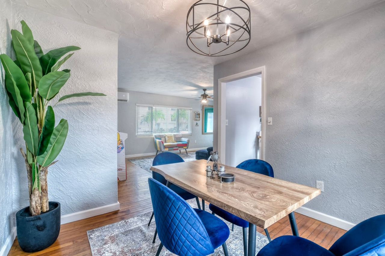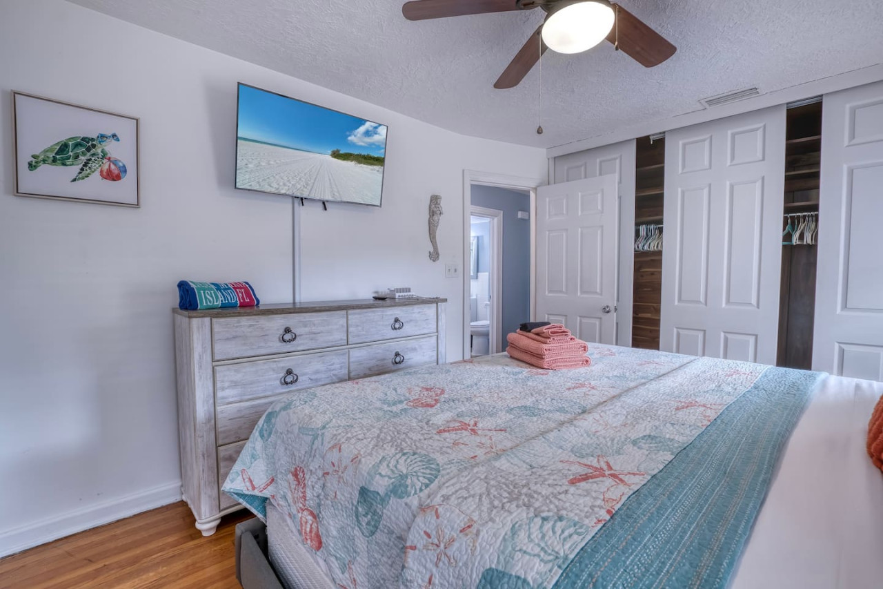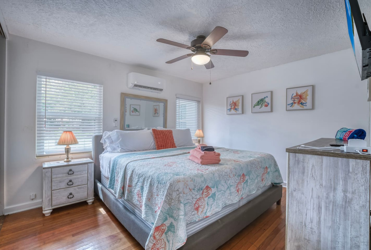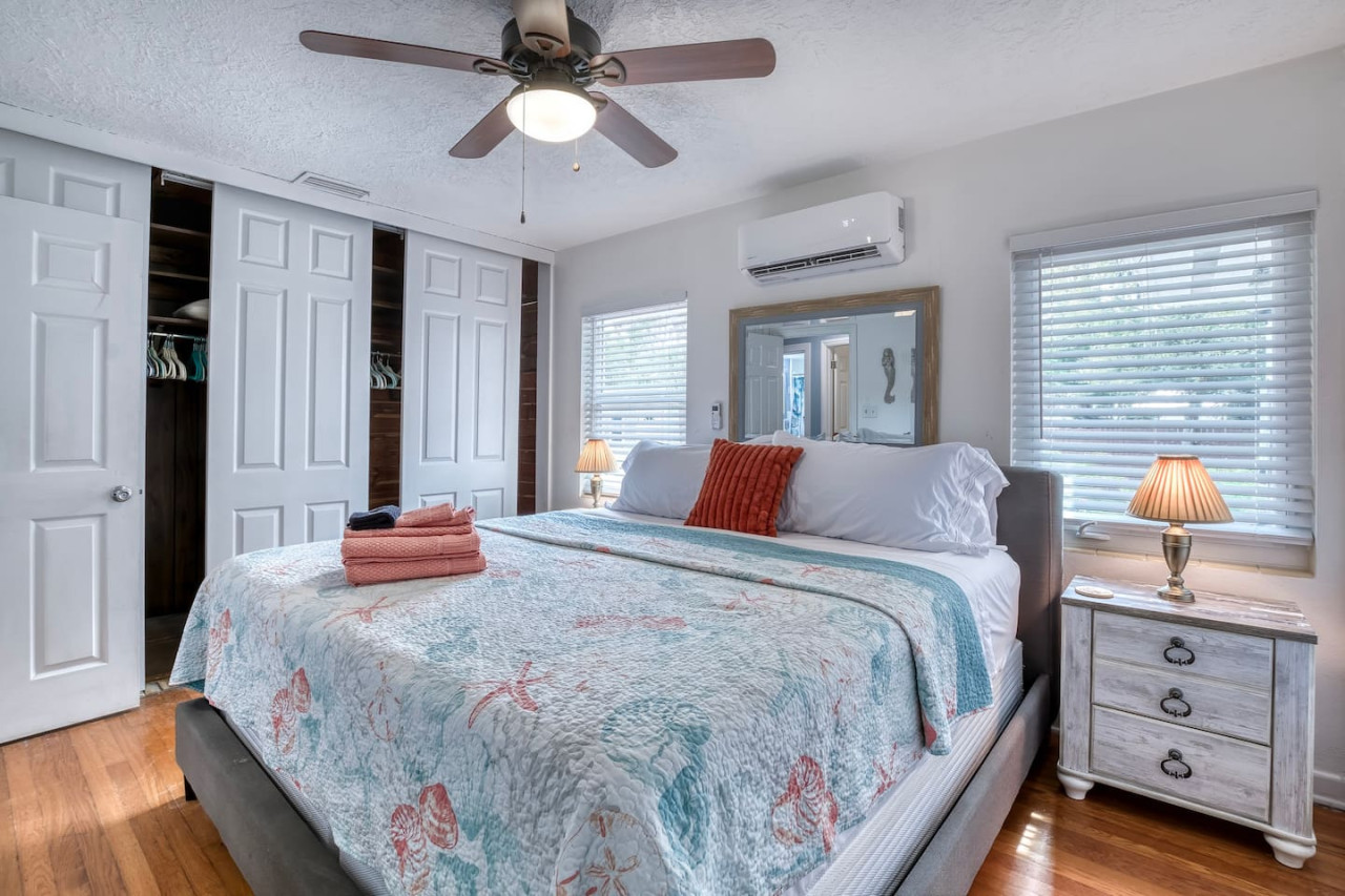 The Mermaid Life: *2 King beds *Dedicated work space *Roku Smart TV in each bedroom and Living Room *Coffee Station with your choice of drip or Keurig with a starter supply *1 full bathroom with shower/tub combo *Old fashioned arcade game *Board games *Separate dining room *Charcoal grill *Outdoor space *Private entrance *Parking in front of home *Beach supplies: towels/chairs/cooler/umbrella *Fast, FREE Wi-Fi *Our newly designed guest book is full of information for your convenience Want to take a family vacation that lets you enjoy our beautiful city without busting your budget? Look no further! Our newly remodeled and redecorated home is the perfect location for you. The Mermaid Life boasts old Florida charm, with its original wood floors and retro kitchen cabinets, while welcoming you with its fun and vibrant coastal décor. You will enjoy your own private entrance and parking space right in front of the house. Out back is our shared area where you can grill up some food on our charcoal grill, and eat your meal at the covered table or sit out and enjoy the sounds of nature on one of our cozy loungers. Wanna get out and explore – no problem. You are within walking distance to local restaurants, shops, entertainment, and/or the AMI Ferry which allows you to get to the beach while escaping the hassle of traffic. Once you’re done exploring come home, relax and enjoy a good night’s sleep in one of our comfy beds. We look forward to showing you some good old fashioned southern hospitality. * Full kitchen including microwave and dishwasher – stocked with starter supply of dishwasher pods, new kitchen sponge, dish soap, paper towels. * Starter supply of toiletries: shampoo, conditioner, shower gel, toilet paper The Mermaid Life is for your exclusive enjoyment. Private entrance and space. The large backyard deck is a shared area with 2 other cottages on this large property. Laundry area is available for stays longer then 5 days upon request. You are responsible for your own laundry supplies. We live just a few houses away and are available for any questions or problems. Functional smoke detectors, fire extinguishers, and first aid kit in home. Hospitals are minutes away if needed. Please message me with any questions or concerns. We will get back to you, usually within minutes. The Mermaid Life is in an amazing area. It is centrally location by the Manatee River, close to downtown, and world renowned beaches. IMG Academy: 4.2 miles Bradenton Area Convention Center: 1.3 miles Anna Maria Island Beaches: 8 miles UTC Mall In Sarasota: 11 miles Sarasota Airport: 8 miles St Pete/Clearwater Airport: 28.9 miles St. Armands Circle and Lido Beach: 11 miles Siesta Key Beach: rated #1 beach in USA - 16 miles. Bradenton Riverwalk (riverfront biking, jogging, playground, splash park, volleyball and bike/skate park): 5 minute walk South Florida Museum & Planetarium (with Manatees!!)- 1 mile. LECOM park: Pittsburgh Pirates spring training facility - 1 mile. Sarasota Jungle Gardens: 9.2 miles. Mote Aquarium: (More manatees) 12 miles. Favorite Restaurants We Love! Breakfast/Lunch: Sage Biscuit downtown Bradenton Peaches (numerous locations) with fresh squeezed orange and grapefruit juice. Lunch/dinner: Pier 22 outdoor dining on the river Riverhouse Grill in Palmetto waterfront (great view) Motorworks Brewing (outside Jenga, corn hole, outside entertainment with great food and even better craft brews)- .8 miles Bike & walk in downtown. To beach access MCAT public transportation, car rental, uber-all accessible from our downtown location. Please keep the House clean and tidy, and more important enjoy yourself and the beauty of the surrounding area! You are responsible for the safety of yourself and guests. I take pride in preparing our home for each guest and in doing so, I take inventory of the household contents. If anything happens to be broken, missing, or if extra cleaning is needed after your stay, please understand that additional charges may incur. Please no smoking in the unit as there is a covered smoking area outside. Please note we do not offer refunds of any kind for any reason if it’s outside of the cancellation policy in place. Airbnb offer trip insurance for each reservation.