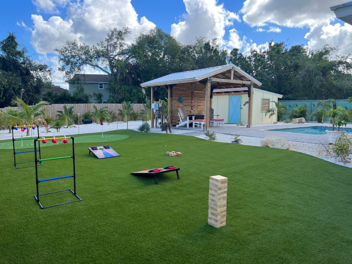 Location! Have fun with the whole family at this stylish home. Just minutes to Anna Maria Island beaches. This incredible newly built home sets the highest standards of luxury living. It’s the ideal retreat with its expansive views of the outdoors from the moment you enter. Open concept with large French doors throughout the home creates the perfect indoor-outdoor lifestyle. Spend the day lounging by the heated pool with a cold drink in your hand. Fun turf yard area with games and putting green Our stylish open-plan 3-Bedroom sun filled rooms have been tastefully decorated with brand-new furniture in an all new coastal theme. Several slider doors and big windows flood the space with loads of natural light, and ceiling fans throughout keep the Florida heat at bay. The 3 bright bedrooms are decorated in soothing colors with a relaxed beach vibe. The master bedroom comes with a comfortable King-Size bed and huge private en-suite. The master bedroom also has a generous walk-in closet. Bedroom number 2 comes with a Queen bed and ample storage. The 3rd bedroom has a bunk bed and a futon full size bed. With 2 full size bathrooms everyone has plenty of space. One bathroom has a tub/shower combo. The open floor plan will be noticed as soon as you open the front door. Inviting you to relax or entertain with the entire family. We have smart TV's that include local channels in almost every room in the house. Hi-speed WI-FI will naturally be provided as well throughout your stay. You'll especially love the secluded backyard surrounded by tropical Florida foliage. A perfect place to relax with the entire family. The private heated pool will bring the WOW factor. Should you decide to leave this Floridian sanctuary, you'll have all your desired amenities within a short 5 mile radius with plenty to do and see for all ages! Fully stocked for the beach (only 5 MILES away) or stay &enjoy the amenity-rich backyard with turf, putting green, heated pool, grill and lots of yard games. At night this place is even more jaw dropping w/colorful lights. You won’t want to leave! Cameras are only located outside the front door and on the back corner of the house. Both cameras will record audio and video and are for the safety of homeowner and our guests. Guests have full access to the entire house. We have 2 owners closets that are locked. We communicate strictly through Airbnb so please have the app downloaded on your phone. We are always available for anything you might need. We live just a few miles away and are available for any questions or problems. Functional smoke detectors, fire extinguishers, and first aid kit in the house. Hospitals are minutes away if needed. Please message me with any questions! Enjoy everything in the surrounding area! Downtown Bradenton 2.5 miles Holmes Beach 5 miles Anna Maria Island 5 miles IMG Academy 3.8 miles Publix 2 miles Robinson's Preserve 2 miles Manatee Memorial Hospital 3 miles Dunkin 1 miles Lido Key & Downtown Sarasota 15.1 miles Siesta Key 19 miles SRX Airport 9 miles This is a free trolley that goes up and down Anna maria island and a bus comes to every stop every 20 minutes. There are 26 stops in total on the island so you can get anywhere. FREE! Download the "mystop" app and click on manatee county to get real time updates on bus expected arrival times. If staying in the area, we do suggest renting a vehicle. Please note we do have cameras ONLY outside for everyone's safety. These cameras are located by the front doors and around the back of the house. They will record audio and video. Please note we do not offer refunds of any kind for any reason if it’s outside of the cancellation policy in place. Airbnb offer trip insurance for each reservation.